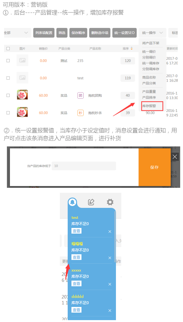 产品库存报警